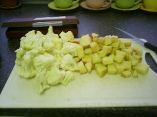 After peeling the squash I chopped it into smaller pieces and put them in a bowl to one side.